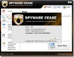 Spyware Cease é um conceituado antispyware usado para proteger eficazmente seu PC. Oferece proteção contra as ameaças de spyware mais recentes como keyloggers, cavalos de Tróia, adware, cookies maliciosos de rastreio orientados a tecnologia, navegador hijackers, worms, ataques de phishing e vários ataques de spywares mal-intencionados.